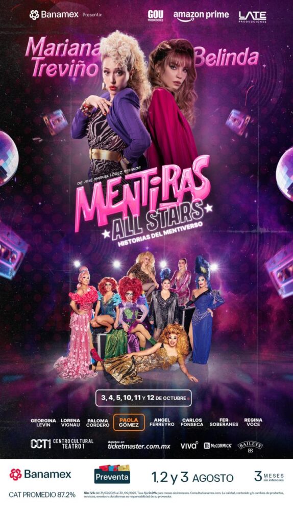 ¡Es oficial! Dos de las figuras más queridas del espectáculo, Belinda y Mariana Treviño, compartirán por primera vez el escenario en la esperada edición especial de Mentiras All Stars. Esta celebración teatral se llevará a cabo los días 3, 4, 5, 10, 11 y 12 de octubre en el Centro Cultural Teatro 1 de la Ciudad de México.